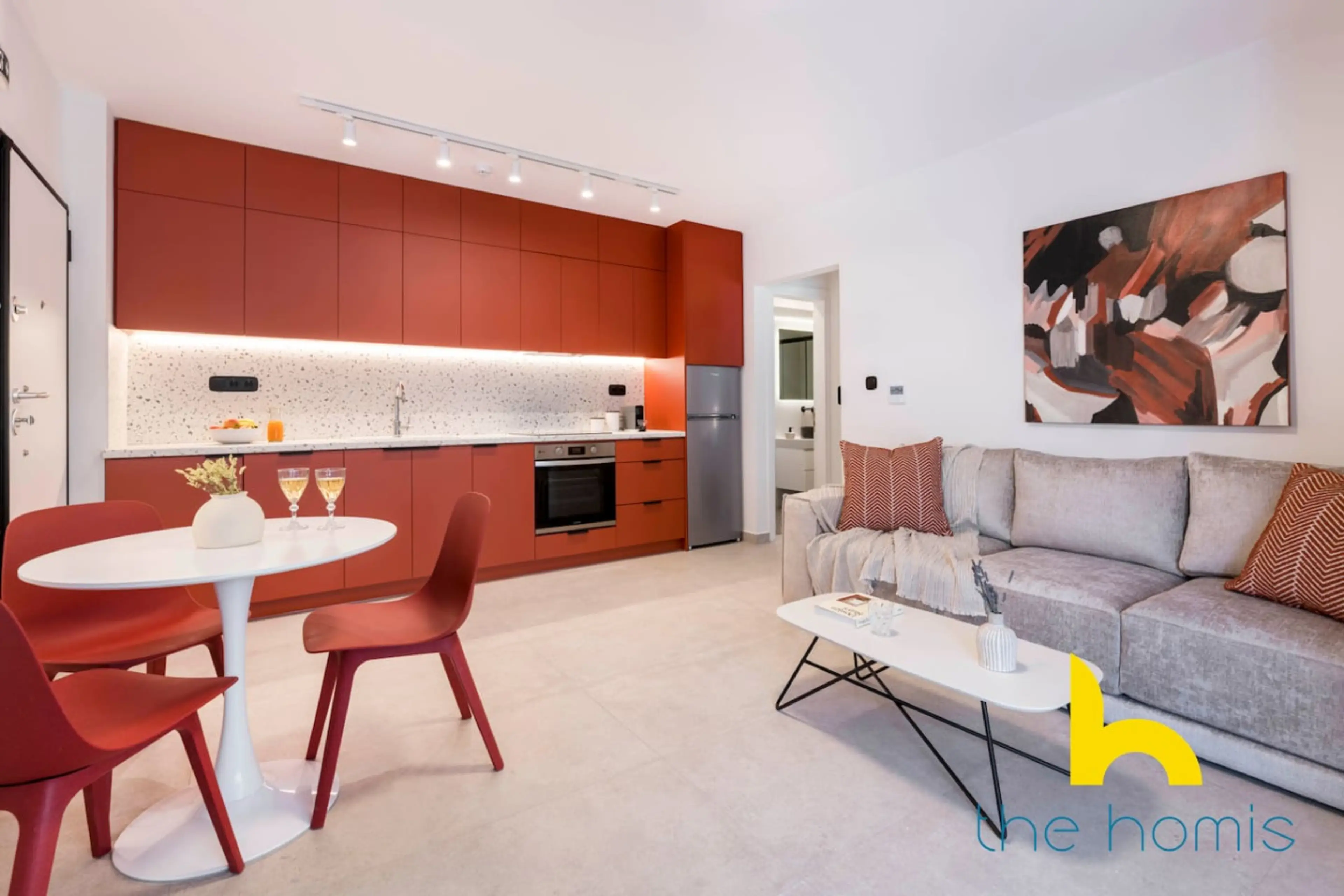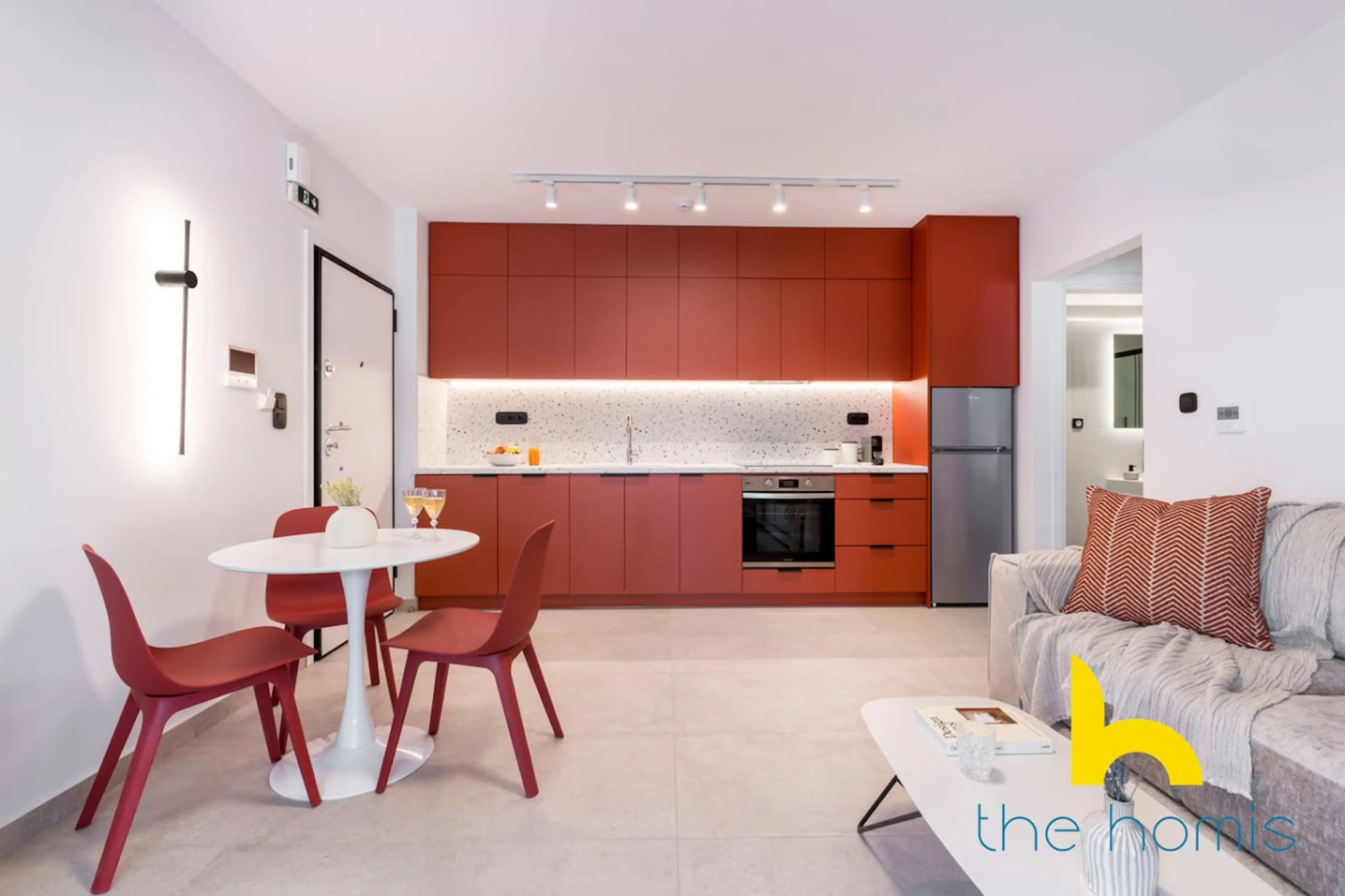 Designed for couples, solo travelers, and business guests, this 1-bedroom apartment offers modern comfort with a king-size bed, smart TV, fully equipped kitchen, washer, and luxury bathroom. Located in a central, brand-new building with high-speed Wi-Fi and a private parking spot. This chic 1-bedro...